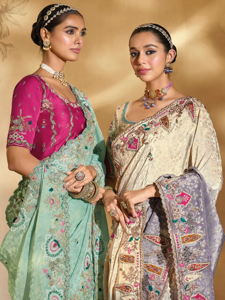 Organza and Pashmina Sarees – Lightweight and elegant, suitable for receptions or daytime ceremonies.