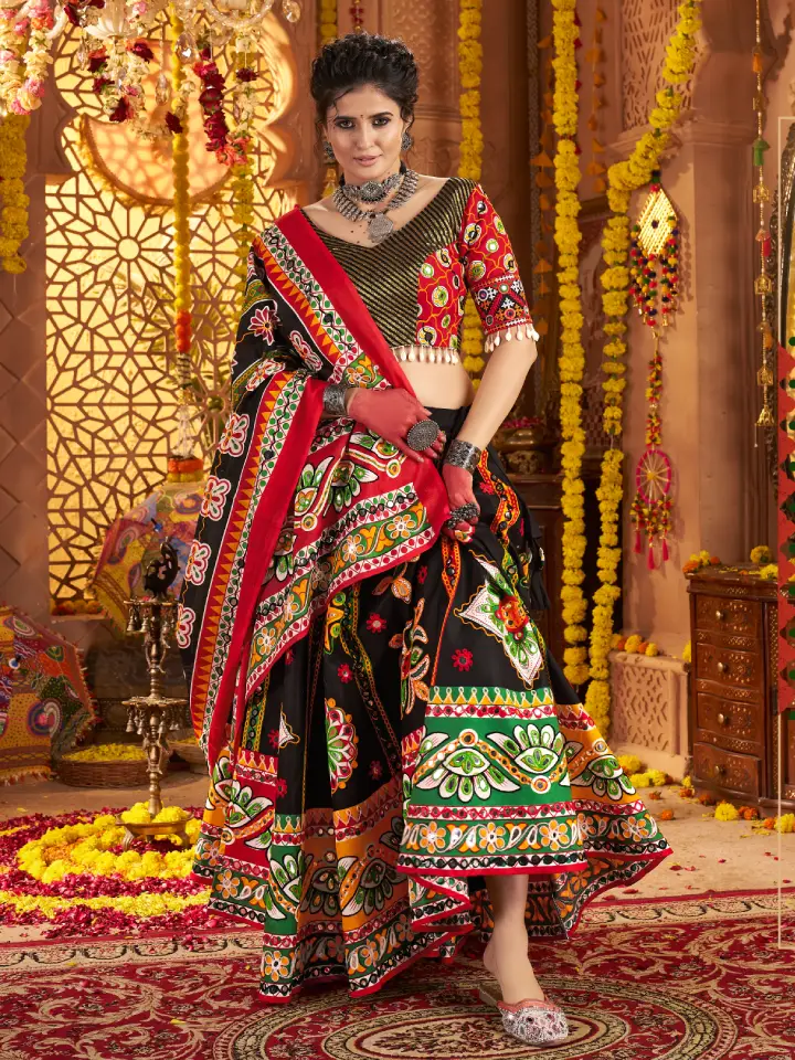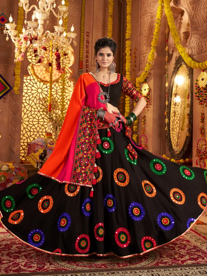 Shine with sophistication in a rajgharanaa black chaniya choli featuring bold color, elegant embroidery, and comfortable fabrics. Designed for Navratri celebrations, it allows graceful movement during garba dancing. Perfect for women seeking a stylish yet traditional look, this outfit balances modern aesthetics with cultural heritage, making festive nights memorable and elegant.