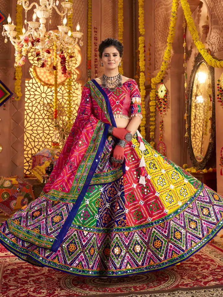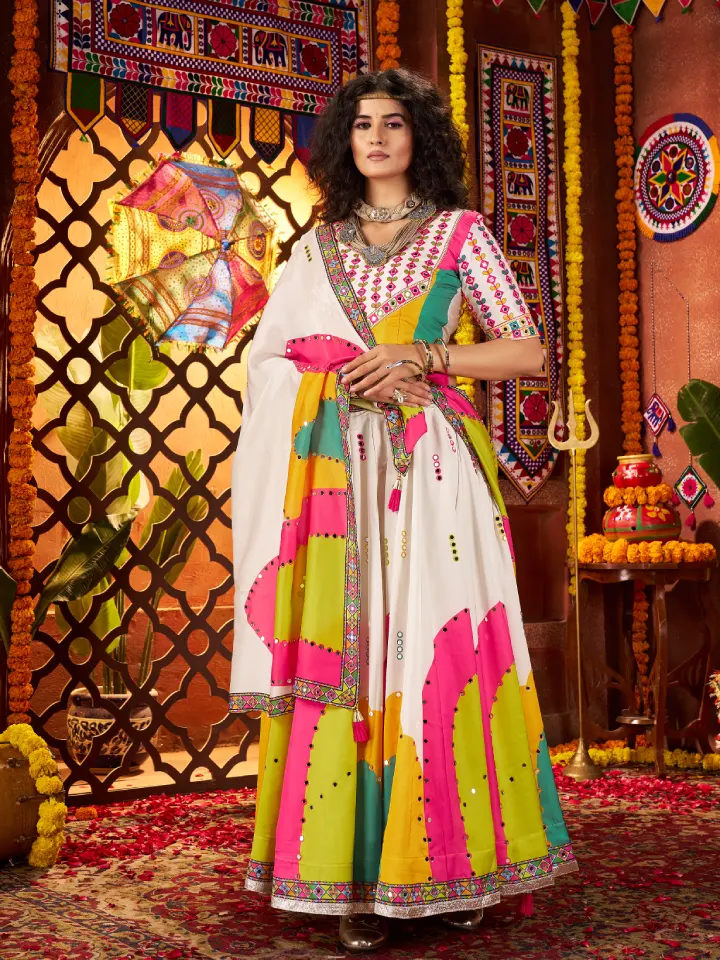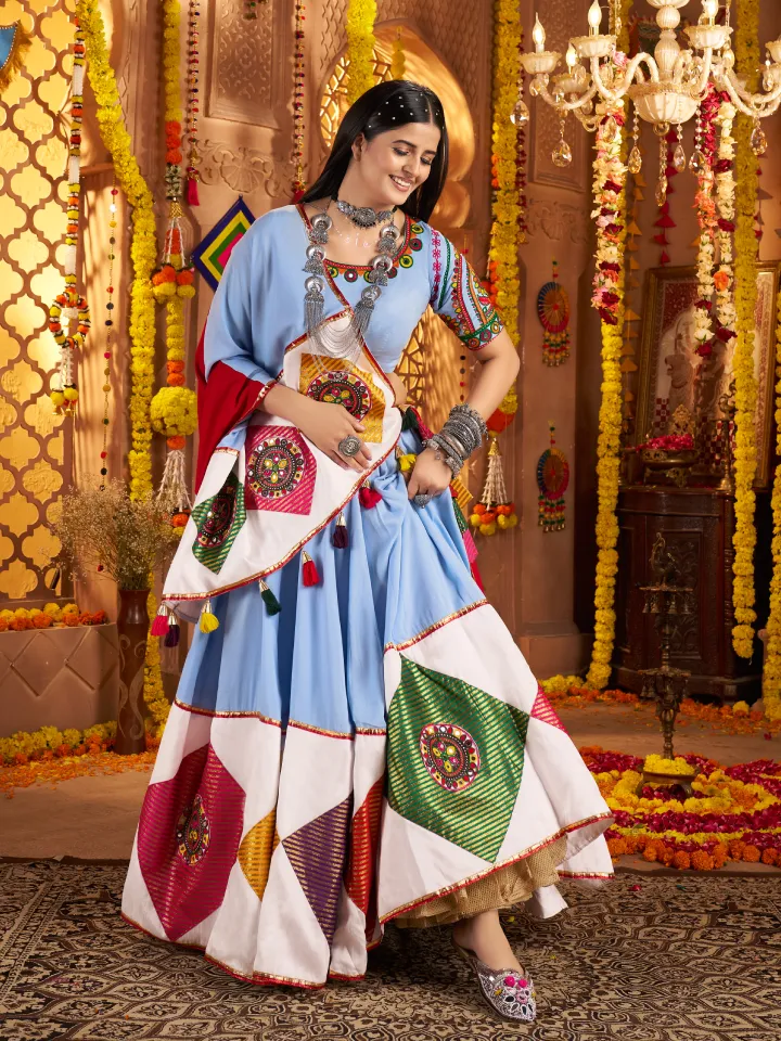 Rajgharanaa chaniya choli new style offers a fresh take on traditional festive wear, featuring innovative designs, bold colors, and intricate embroidery. Perfect for garba celebrations, it combines comfort, elegance, and cultural charm. This outfit allows women to showcase confidence, movement, and festive spirit while embracing a modernized Navratri look.