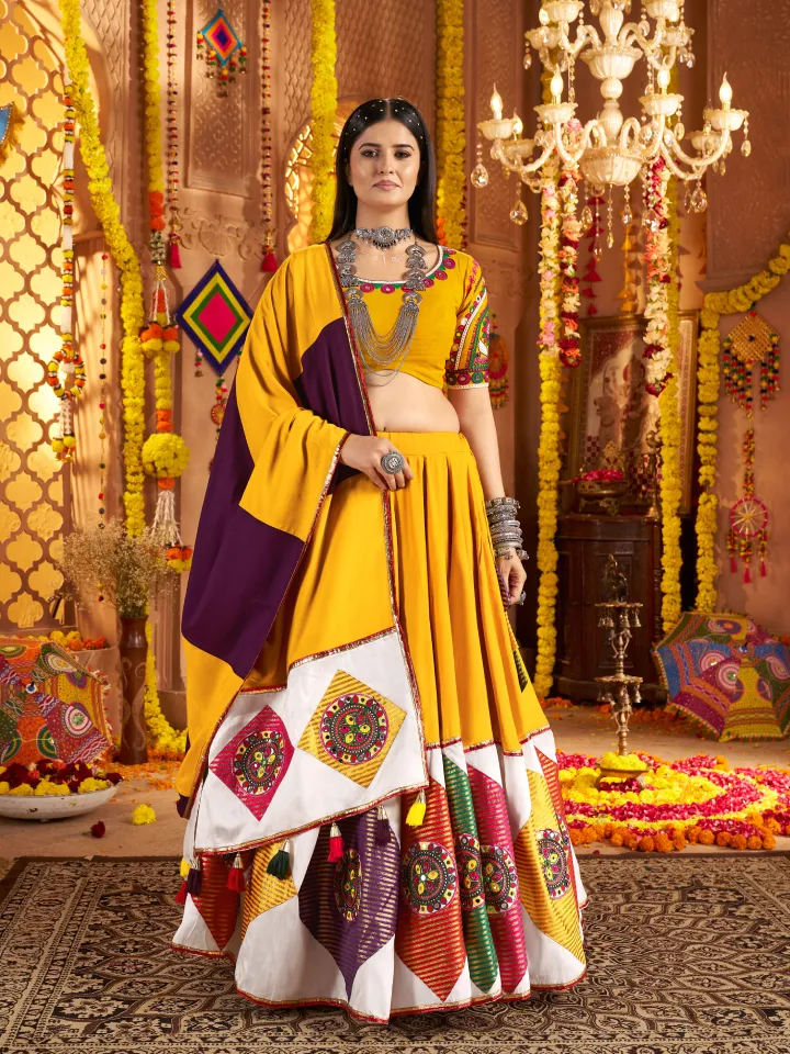Explore rajgharanaa chaniya choli new fashion, combining trendy designs with traditional embroidery, vibrant colors, and comfortable fabrics. Ideal for garba nights, it ensures graceful movement while reflecting modern festive aesthetics. This outfit enhances your Navratri experience, blending cultural elegance with contemporary style, creating a standout and fashionable celebration ensemble.
