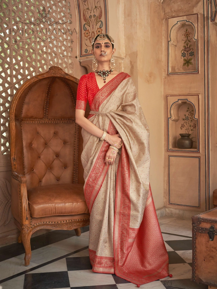 The Rajgharanaa kanjivaram sarees offer timeless elegance with the finest Kanjivaram silk, showcasing intricate designs and rich colors, ideal for traditional weddings and grand celebrations.