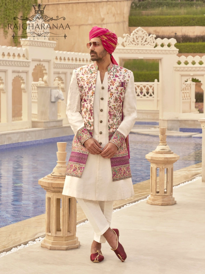 | Design Groom’s Attire | Pajama: Coordinated With The Sherwani or Kurta, Sherwani/Kurta: Embellished With Traditional Motifs, Paired with Churidar or Dhoti, Stole/Scarf: Elegant With Detailed Embroidery or Matching Brocade |