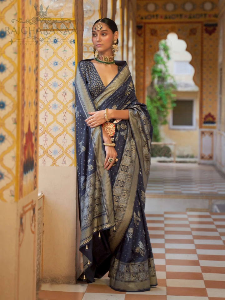 The Rajgharanaa engagement saree look for bride features sarees specifically chosen to enhance the bride’s engagement day, with delicate embroidery, luxurious fabrics, and a flattering fit to ensure a picture-perfect moment.