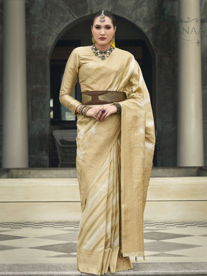 Gorgeous zari patterns add a luxurious and cultural touch to this timeless saree