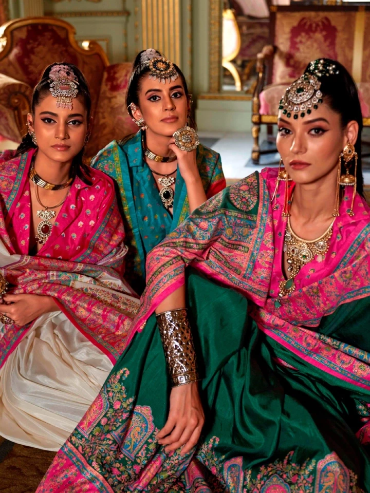 The Rajgharanaa original pashmina silk saree is a true emblem of luxury, heritage, and Kashmiri royal artistry. Crafted from superior-quality pashmina silk threads, this Rajgharanaa creation brings together the opulence of traditional pashmina and the refined sheen of silk. Each Rajgharanaa original pashmina silk saree is meticulously woven by artisans who have inherited generations of expertise, ensuring every motif, texture, and drape tells a story of cultural richness. Rajgharanaa blends elegance and comfort effortlessly, delivering a lightweight yet warm saree perfect for celebrations, formal gatherings, and timeless wardrobe styling.