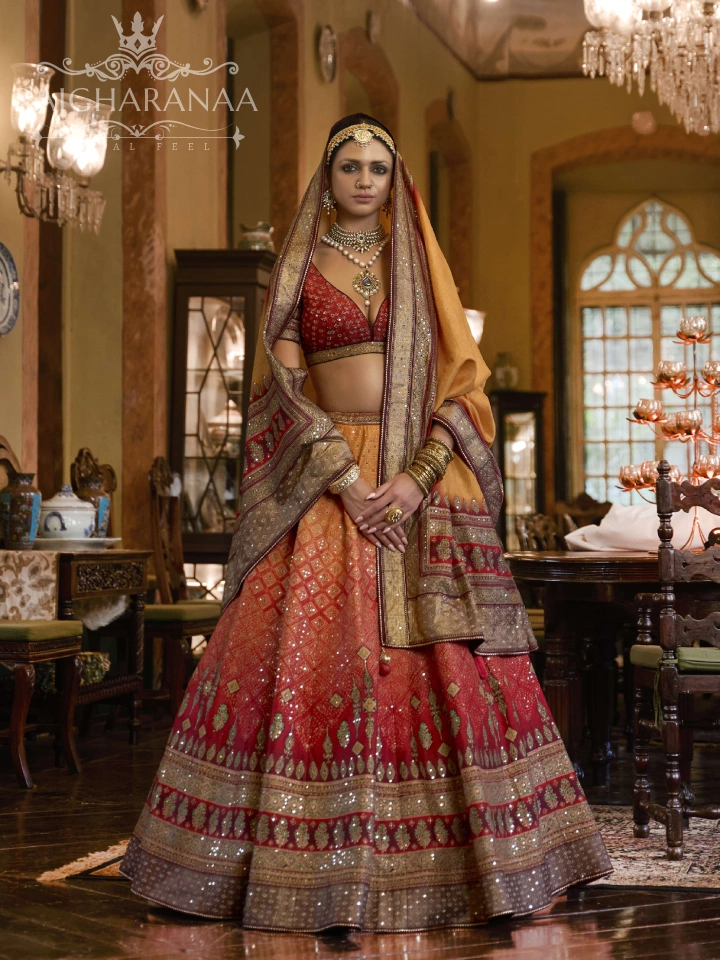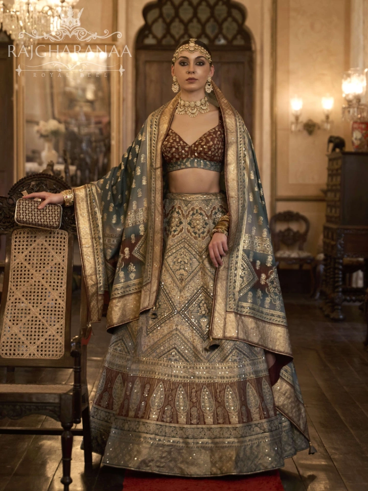 The lehenga makes me feel confident the elegant silhouette is empowering and very sophisticated for any important public appearance always. Pure bridal grace.