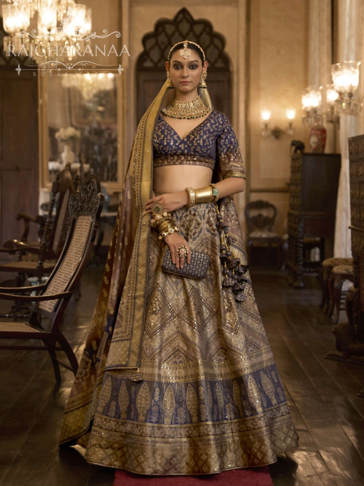 The lehenga is a true work of art a beautiful blend of traditional weaving technique and superb modern style and elegance. The quality is supreme.