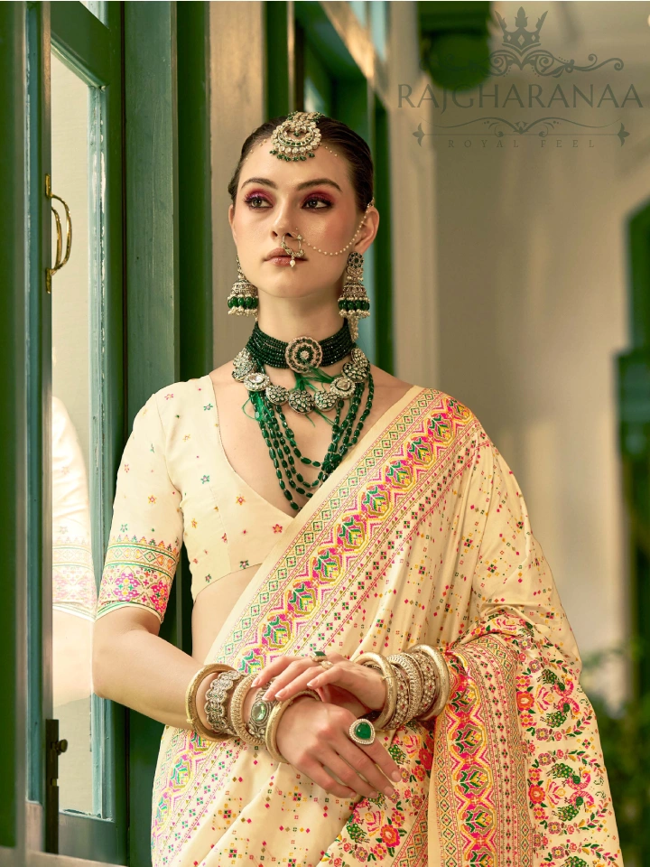 Rajgharanaa White Bridal Saree is the perfect combination of purity and elegance for brides who want something unique on their wedding day. White symbolizes a fresh beginning, and the Rajgharanaa White Bridal Saree captures this essence with its delicate craftsmanship and luxurious fabric. The saree features intricate embroidery and detailed patterns, making it an exquisite choice for brides who prefer a lighter, more serene look. Whether you’re looking for a traditional design or a modern, minimalist style, the Rajgharanaa White Bridal Saree is perfect for making a graceful statement on your special day.