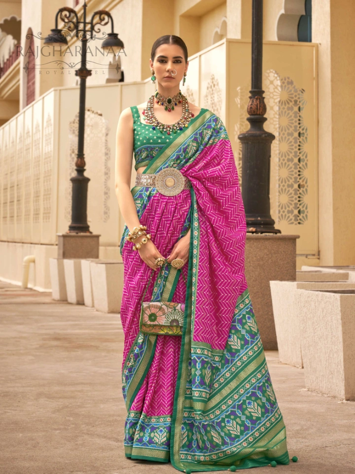 Rajgharanaa Marriage Saree Collection offers a wide range of sarees for brides and guests. Featuring intricate patterns, vibrant colors, and luxurious fabrics, this collection ensures an elegant and timeless look for any wedding.