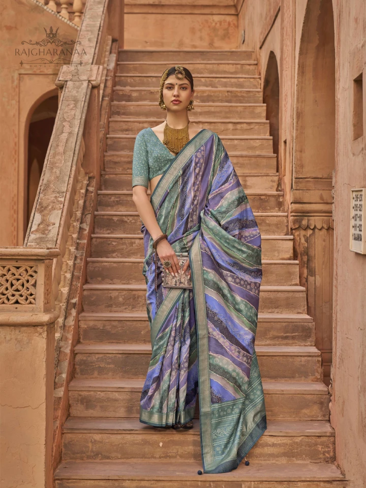The Rajgharanaa Patola Saree Silk combines intricate Patola weaving with the luxurious texture of silk. Ideal for weddings and cultural celebrations, it offers a timeless, elegant appearance with its rich patterns and vibrant colors.