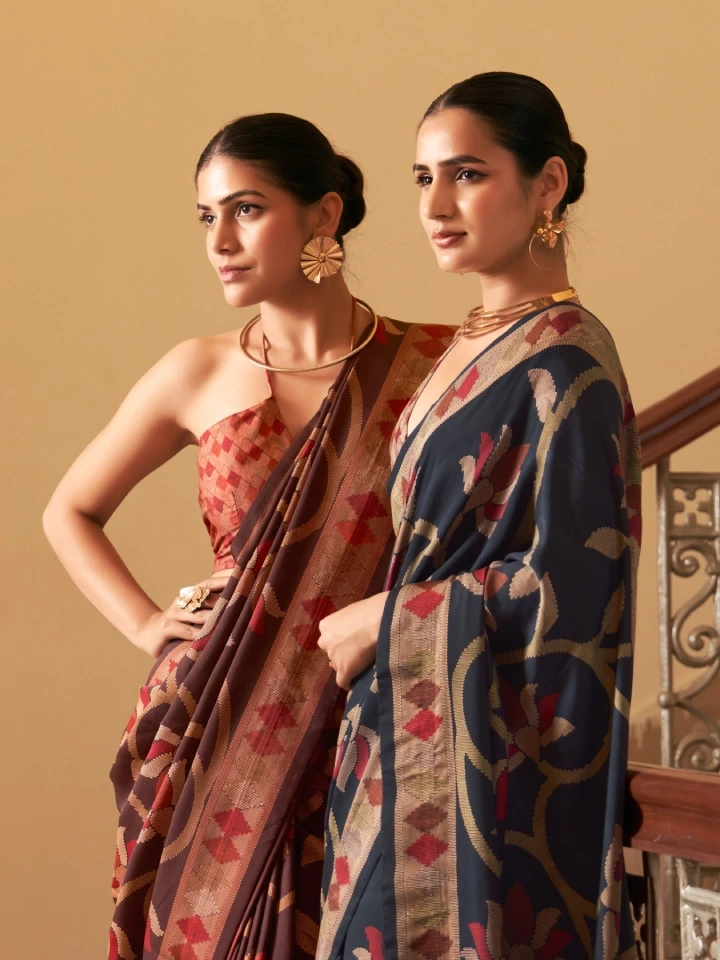 Rajgharanaa Vibrant Patola Print Art sadi brings heritage motifs and vibrant geometric patterns to modern sarees and fabrics. Known for its colorful detailing and cultural symbolism, Rajgharanaa Patola print blends tradition with contemporary elegance, offering stylish choices for festive wear, daily fashion, and designer ensembles.